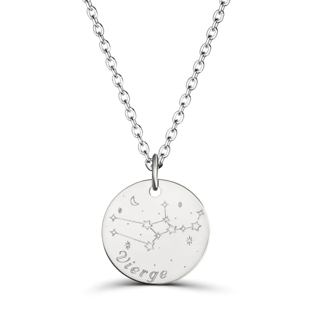 N'oubliez pas de sauvegarder votre personnalisation pour pouvoir l'ajouter au panier.Moments Précieux à réfléchi, imaginé, dessiné à Paris chaque signe afin de vous proposer des bijoux 100% personnalisés et uniques. Avec cette médaille astro montée sur une chaîne en Argent massif, vous pouvez composer un bijou unique et symbolique à offrir à votre homme sans attendre. La constellation Vierge dévoilera ses étoiles les plus lumineuses au recto. Quant à votre petit mot doux, il peut être gravé, avec le plus grand soin, au verso du médaillon pour rester au plus près de son cœur.