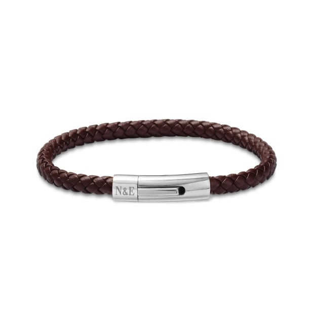 N'oubliez pas de sauvegarder votre personnalisation pour pouvoir l'ajouter au panier.Fin et très élégant, le tressage de ce bracelet en cuir véritable de couleur marron lui confère beaucoup de charme. Pour une touche de modernité, il est doté d'une boucle magnétique personnalisable en acier argenté. Brillante et lisse, cette boucle accueillera vos inscriptions personnalisées, faisant de ce bracelet homme un bijou unique.