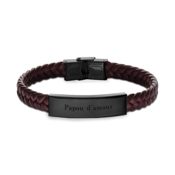 N'oubliez pas de sauvegarder votre personnalisation pour pouvoir l'ajouter au panier.Ce bracelet homme en cuir tressé marron est l'accessoire idéal pour compléter toutes vos tenues. Personnalisable au recto et au verso, il se transforme en un cadeau unique et symbolique pour toutes les occasions : que ce soit pour la Saint-Valentin, un anniversaire ou la fête des pères.