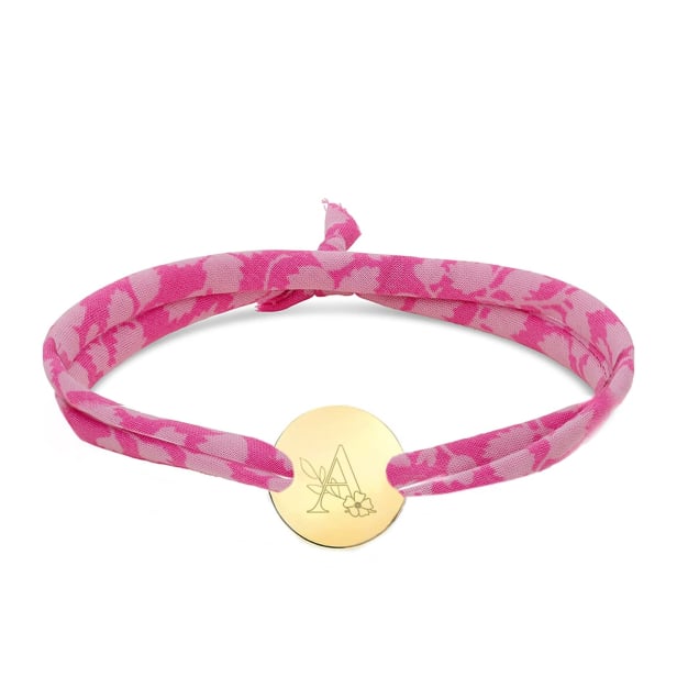 N'oubliez pas de sauvegarder votre personnalisation pour pouvoir l'ajouter au panier.Ravissant et délicat, ce bracelet cordon Liberty avec médaille en plaqué or est conçu pour capturer la douceur de l'enfance. La médaille affiche une élégante initiale florale gravée sur le recto, tandis que le verso offre la possibilité de graver un message personnel, un prénom ou une date spéciale. Ce bijou unique est idéal pour célébrer un moment important dans la vie d'un enfant.