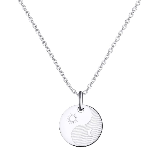 N'oubliez pas de sauvegarder votre personnalisation pour pouvoir l'ajouter au panier.Inspiré de la sagesse traditionnelle chinoise, ce collier en argent dévoile un dessin yin yang sur son médaillon. Les forces opposées sont représentées par le soleil et la lune. Symbolisant un équilibre parfait, cette illustration donne tout son sens à ce bijou original et personnalisable. Ajoutez votre touche personnelle au moyen d'une gravure, réalisée au verso du médaillon.